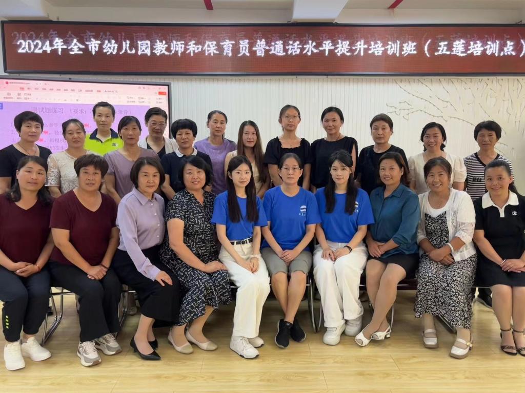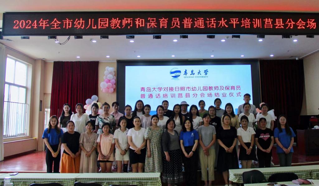 2024年7月29日至8月2日,由青岛大学国家语言文字推广基地主办、青岛大学文学与新闻学院承办的“青岛大学对接日照市幼儿园教师及保育员普通话能力提升活动”顺利结束,并取得了显著成效。