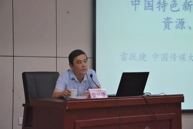 中国高等教育学会新闻学与传播学专业委员会新闻学研究会常务副会长,中国传媒大学新闻传播学部传播研究院院长雷跃捷教授的讲座题目为《中国特色社会主义新闻学的命题、资源、路径与方法》。他同与会老师共同探讨了中国特色新闻学建设的命题、资源、路径与方法四个问题,提出中国特色新闻学建设可以换个角度,借鉴、比较相邻学科进行研究。