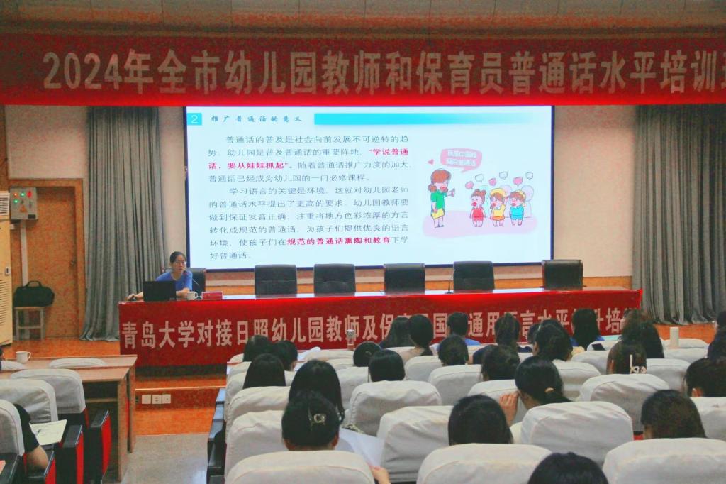 2024年7月29日至8月2日,由青岛大学国家语言文字推广基地主办、青岛大学文学与新闻学院承办的“青岛大学对接日照市幼儿园教师及保育员普通话能力提升活动”顺利结束,并取得了显著成效。